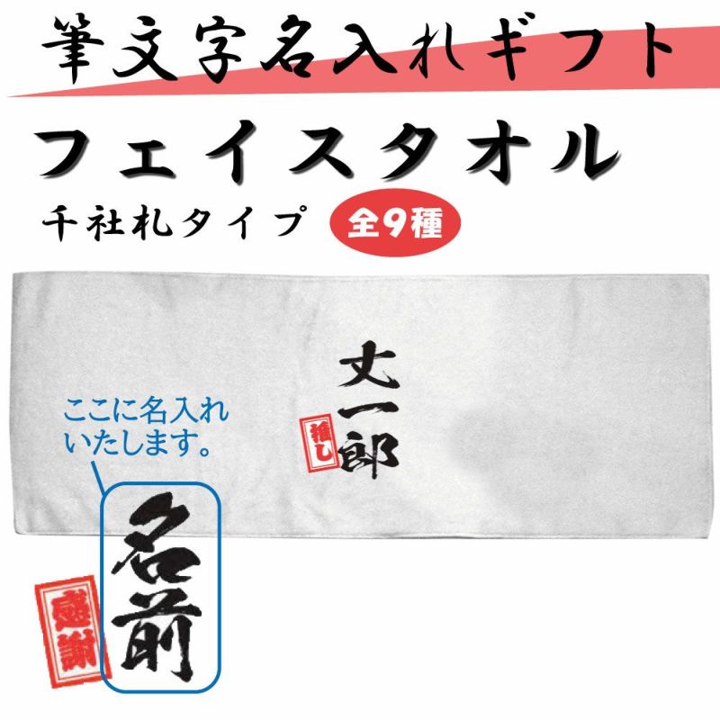 筆文字 名入れグッズ|フェイスタオル 【□千社札 タイプ 】(簡単オーダー) 母の日 父の日 敬老の日 プレゼント