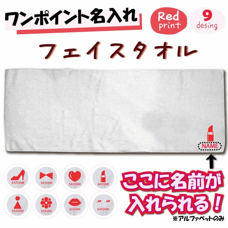ワンポイント名入れギフト|フェイスタオル 【□プリントカラー:レッド】(簡単オーダー) 母の日 父の日 敬老の日 プレゼント