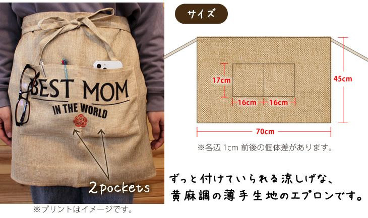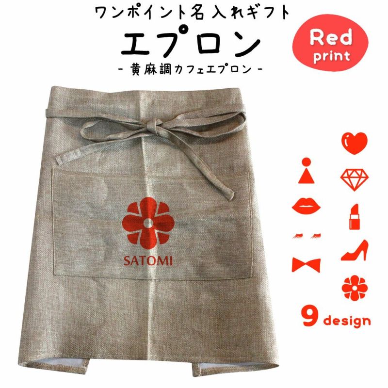 ワンポイント名入れギフト|エプロン 【 カフェエプロン 】【□ 黄麻 調】【□プリントカラー:レッド】(簡単オーダー) 母の日 父の日 敬老の日 プレゼント