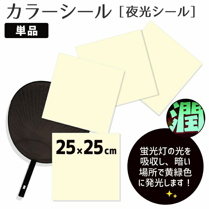 明るい場所での見え方は、乳白色(クリームがかった白)になります。 暗い場所での見え方は、黄緑色になります。 蓄光タイプになりますので、蛍光灯の光を吸収し、暗闇で発光します。 時間とともに弱まりますが繰り返し何度でも発光します。