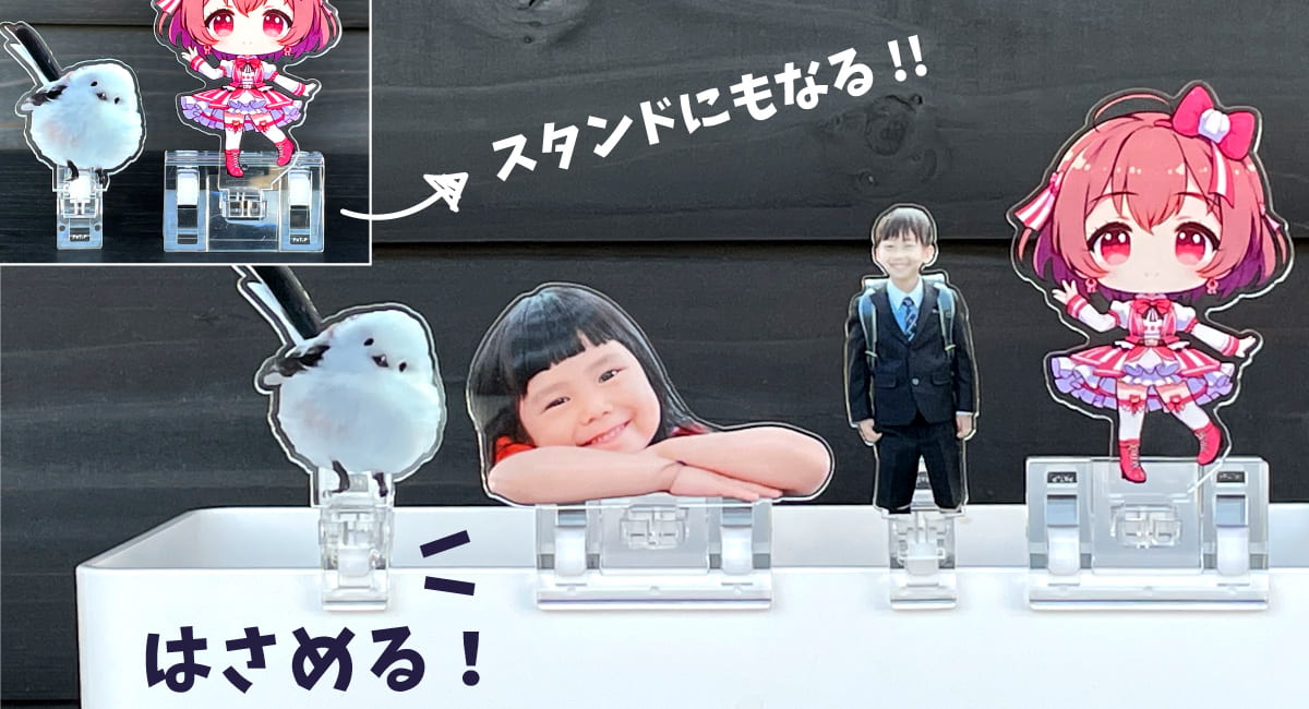 クリップを上下反転させ、アクスタを差し込み直せば、スタンドにもなります。