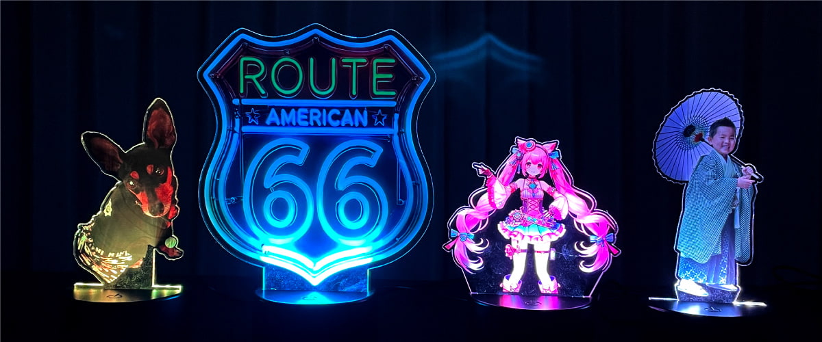 部屋やガレージなどプライベート空間をオシャレに演出したり、 リラックスしたい時間やパーティーなど特別な時間の雰囲気作りに大活躍!ボタン一つでカラフルに点灯するライトアップアクスタなら、暗闇でも推しや大切な人のアクリルスタンドをLEDでキラキラと輝かせ、いつでもあなたを笑顔にしてくれます。