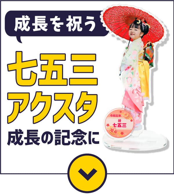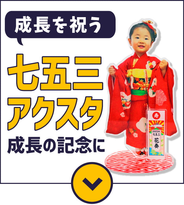 我が子の成長をかわいいアクスタで残したいあなたにおすすめ!七五三を迎えられたお子様への特別な願いが込められた記念のアクリルスタンド。記念プレートを選べたり、名入れができる特別なアクスタです。じいじばあばへのプレゼントにもぴったりです!