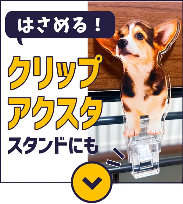 クリップアクスタなら、今まで置けなかったいろんなところ、ペン立てやコップのフチなどにアクスタをはさんで飾れます!スタンドにもなるので、紙を挟んで立てれば、メモスタンドとしても使えます!もちろんそのままアクスタとしても飾ることもできる優れもの!アイデア次第で使い方無限大!!いろんな使い方で自由に楽しんじゃってください!