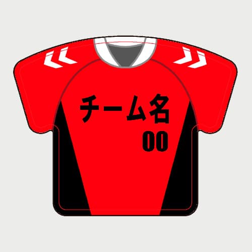 【Tシャツ型】キーホルダーは、上半身のみのユニフォームがデザインできます。